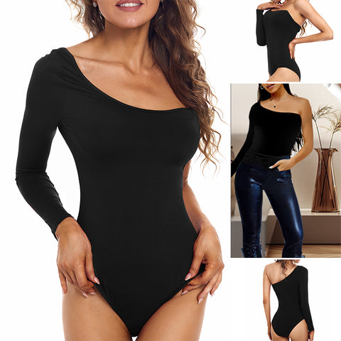 Womens Sexy One Shoulder Long Sleeve Bodysuit Tops Jumpsuits